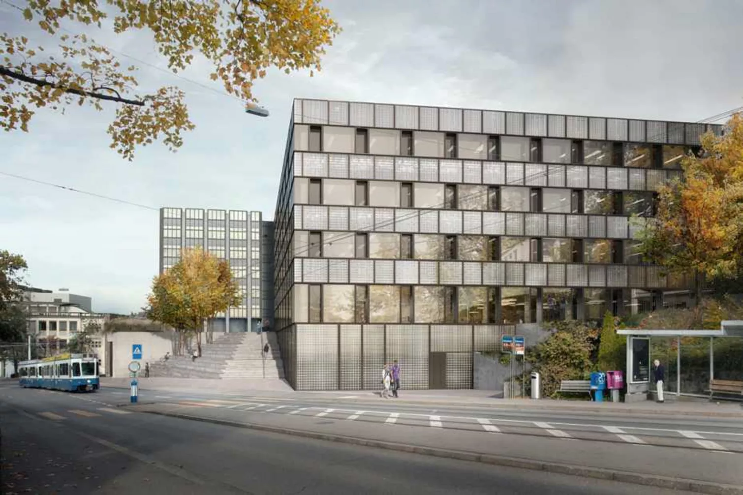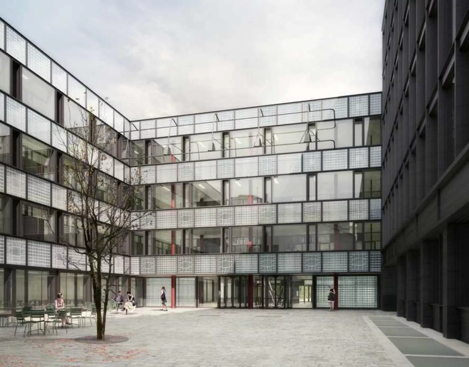 ETH Zurich planned a new research building (GLC) with a total of eight floors. The building provides space for offices, biological and chemical laboratories, student practicals and seminar rooms. After the renovation of the immediately adjacent building (ETZ), this will form a building complex with the new building around a central courtyard. The largest lecture hall at ETH Zurich, the Paul Scherrer Lecture Hall, will be integrated into the new complex.