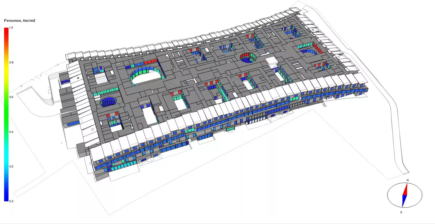 - The simulation principles and results were visualised in clear colour plans. This allowed for more efficient controlling of the many and complex bases of the thermal-energetic simulations.