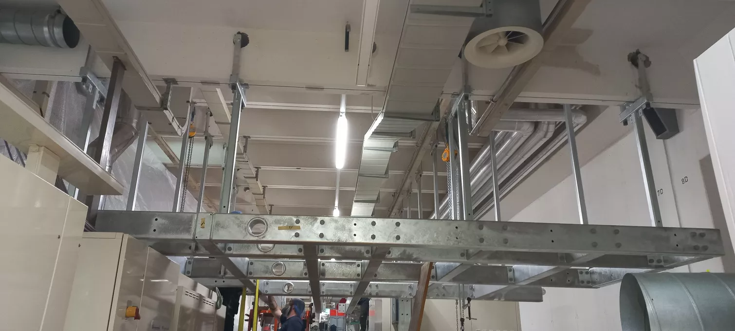 In der Produktionsanlage von HUG in Malters wurde ein neues Podest für eine Produktionslinie eingebaut. Das Podest wurde als Stahlkonstruktion ausgeführt und zur Freihaltung des Bodens an die Dachdecke aufgehängt.