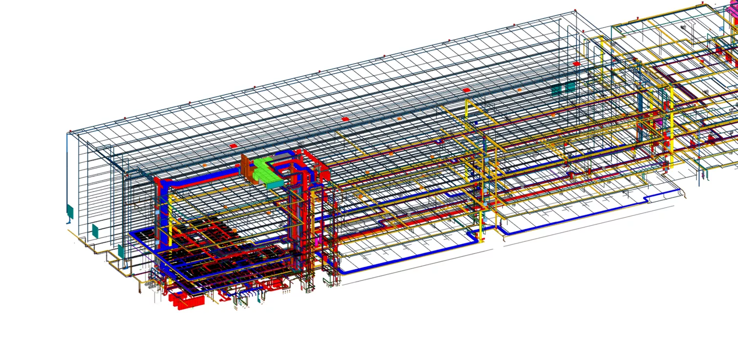 Die komplette räumliche Planung der einzelnen Fachgewerke sowie der räumlichen Fachkoordination wurde über das ganze Objekt als dreidi-mensionale Planung ausgeführt und aufgezeichnet.