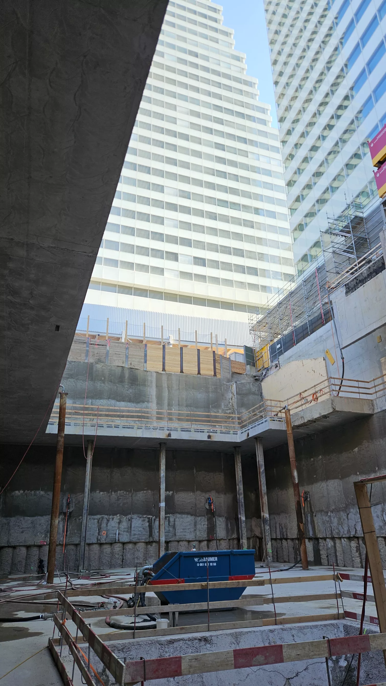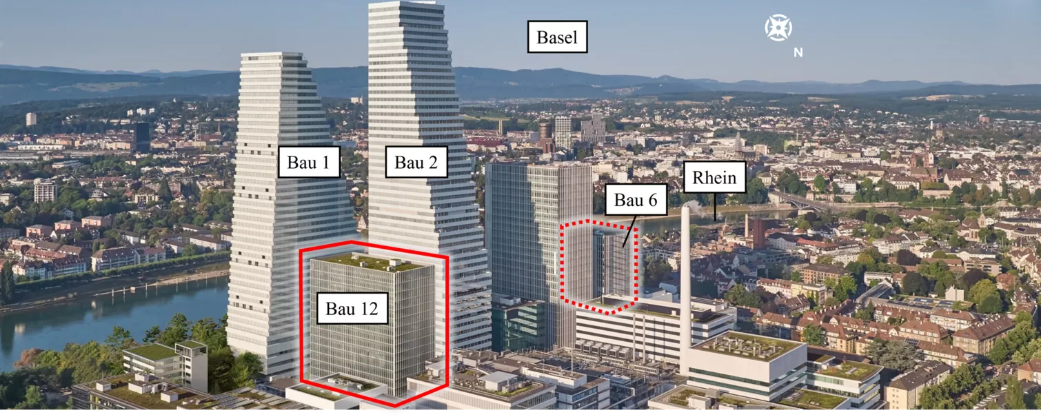 Für die Errichtung des Bau 12 war, nach dem vorgängigen Rückbau des bestehenden Bau 34, die Erstellung einer 22 m tiefen Baugrube mit einer Länge von rund 70 m und einer Breite von rund 35 m erforderlich. Die Planung dieses Hochhauses begann Anfang 2023, und der Abschluss der Realisierung der Baugrube und Fundation erfolgte in 2025.
