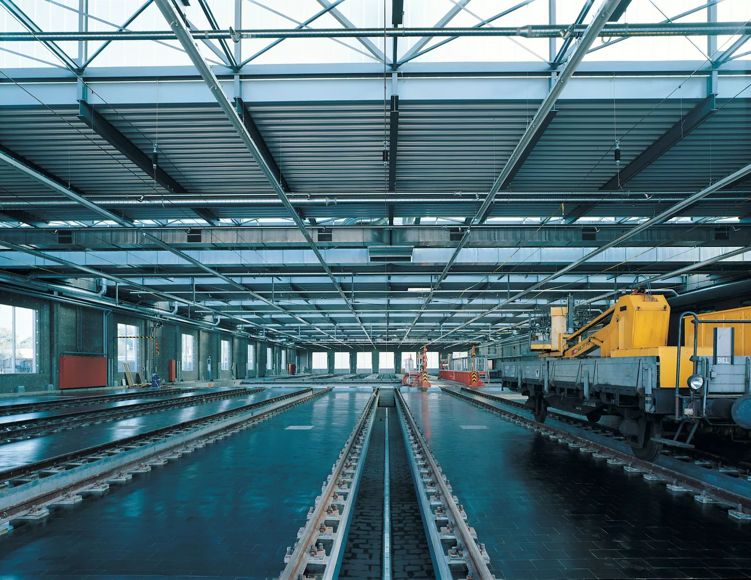 La remise pour trains-navettes (PZR) fait partie du complexe d’ateliers construit en 1990 et plusieurs fois agrandi depuis. Elle sert à la révision et à l’entretien de compositions ferroviaires pouvant atteindre 200 m de longueur. Le bâtiment, conçu par Herzog & de Meuron, présente une importance architecturale marquante dans le paysage bâti. Le principal problème de la remise PZR à Bâle est une surchauffe estivale considérable. Les températures intérieures dépassent 45 °C, en particulier sur la plateforme de travail en hauteur située à environ 4 mètres, où la chaleur s’accumule fortement et exerce une charge thermique extrême sur le personnel.